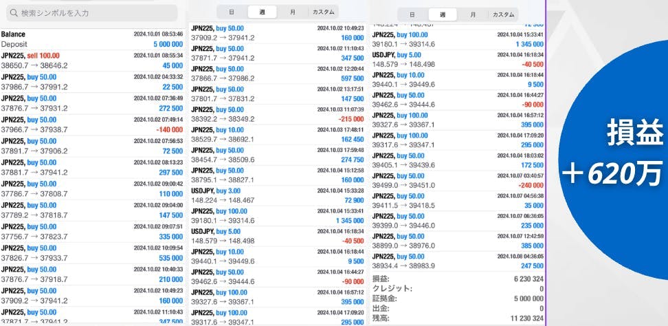 トレードした際の果がこちらです。