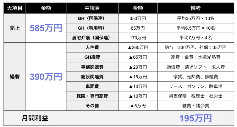 障がい者グループホームの売上は、