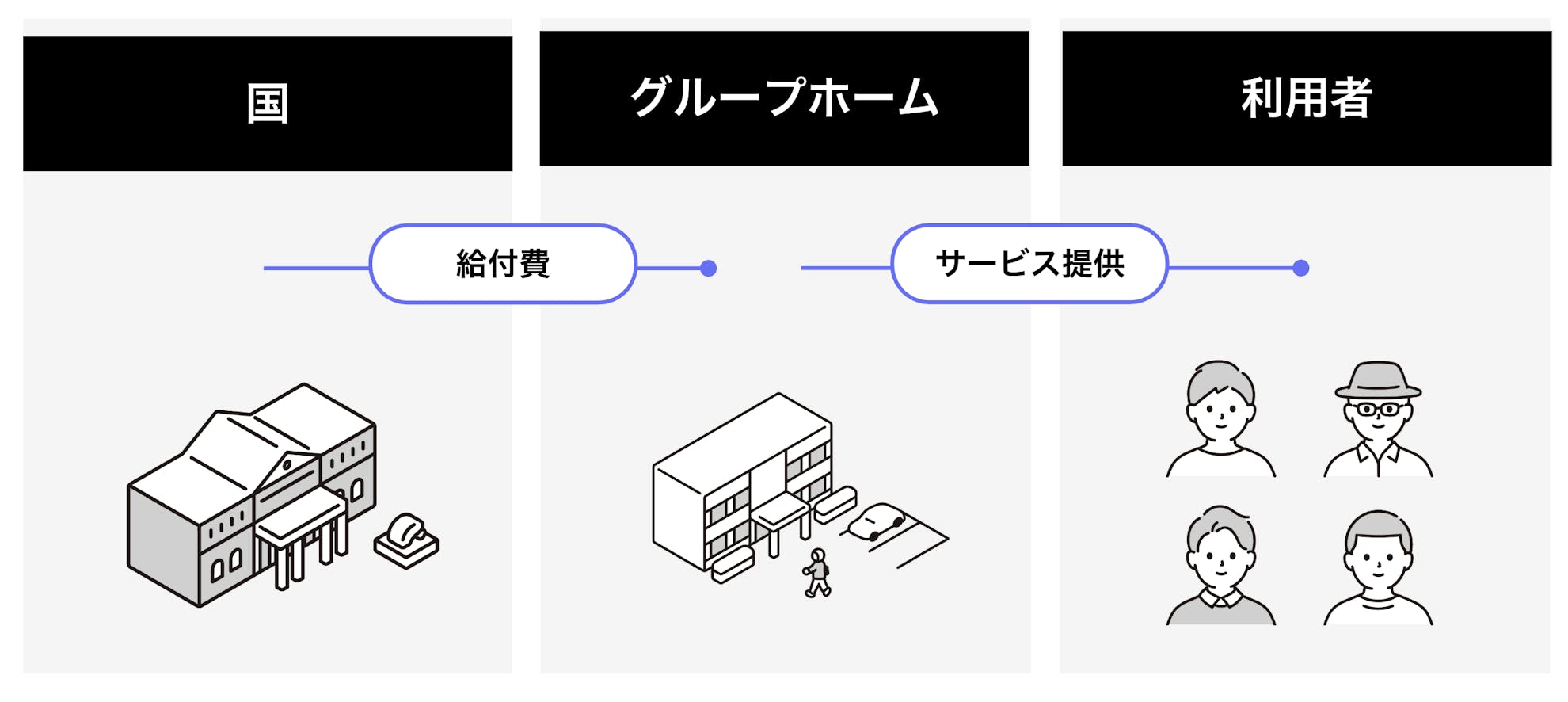 売上は国からの給付費になるので、 債権回収のリスクがありません。 景気や社会情勢の影響も受けにくく、 長期的に安定して運営できる事業です。