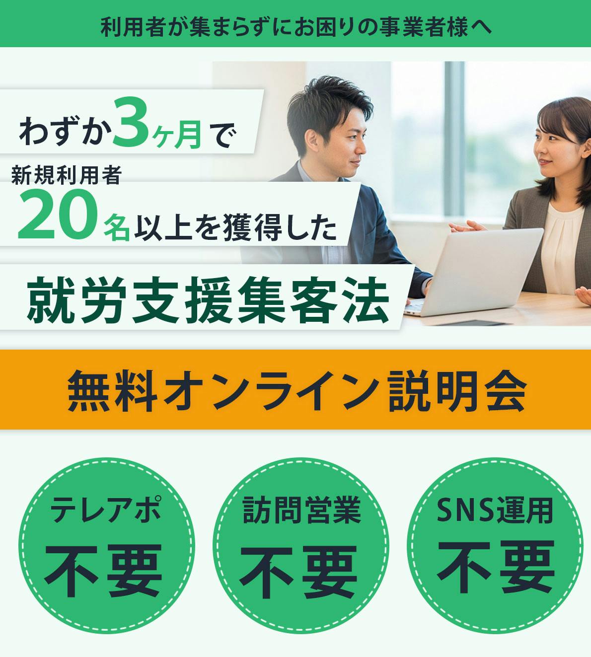 他にはない事業所なので、 利用者が集めやすいのが特徴で、 最短3ヶ月での黒字化を実現しています。